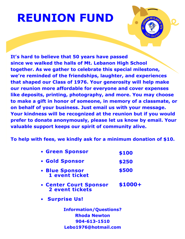 ~ Mail a Check payable to Mt. Lebanon High School Class of 1976